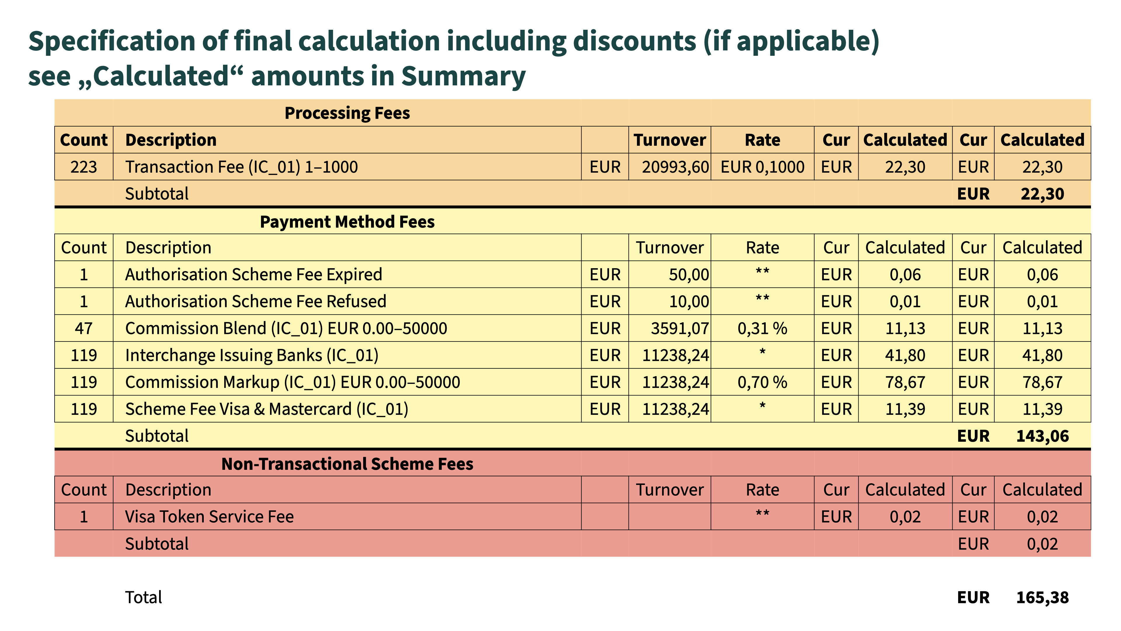 Auf der zweiten Seite erfolgt der Ausweis der jeweiligen Gebühren, die bereits über die Auszahlungen (Payouts) gezahlt wurden und mit dieser Rechnung anfallen.