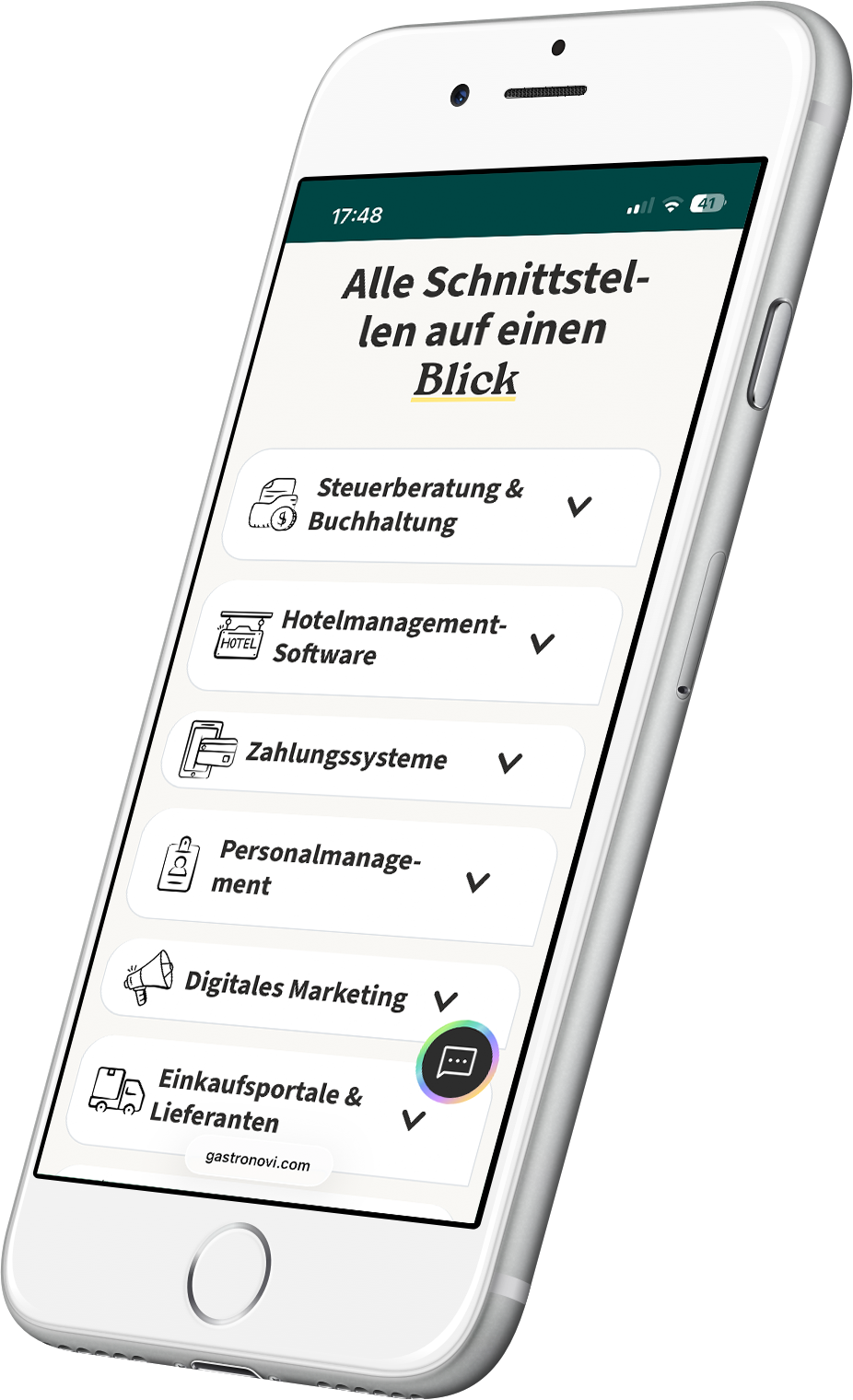 Getreu diesem Motto haben wir die Möglichkeit geschaffen, eine Anbindung an bestehende Systeme vorzunehmen, um Ihre Arbeit noch effizienter zu gestalten. Wir bieten verschiedene Integrationen an, mit denen Sie noch effizienter arbeiten können. Ob Bezahlsystem, Hotelsoftware, Schankanlage oder ein DATEV-Export: Gastronovi bindet bereits viele Lösungen komfortabel ein.